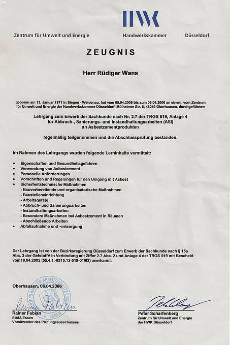 Erweiterung der Dienstleistungen um Asbestabrissarbeiten